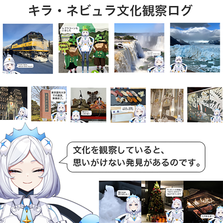 VTuberキラ・ネビュラによる「文化観察ログ」の展示です。