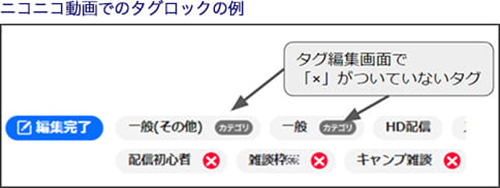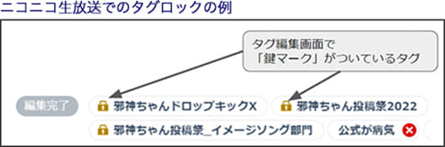 動画・ユーザー生放送・チャンネル生放送:タグが編集できないものはロックされています