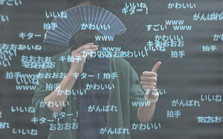 コメントが流れる自作透過スクリーンで誰でもニコ生主風写真が撮れる!コメントは実際に書いたものが流れ続けるぞ!